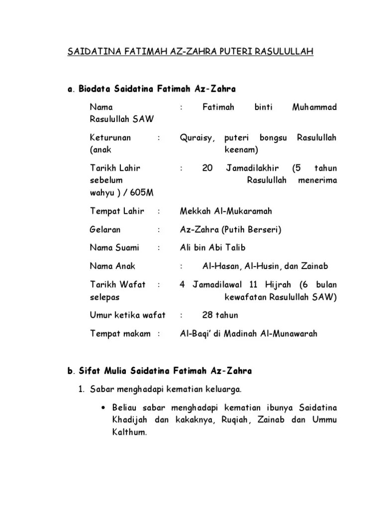 Fatimah dilahirkan pada hari jumaat 20 jamadilakhir tahun 605 . Profil biodata biografi dan fakta lengkap fatimah az zahra istri . Fatimah binti muhammad (bahasa arab: Kali ini kita akan membahas profil fatimah az zahra, biodata fatimah az zahra . Ada gratis ongkir, promo cod, & cashback.